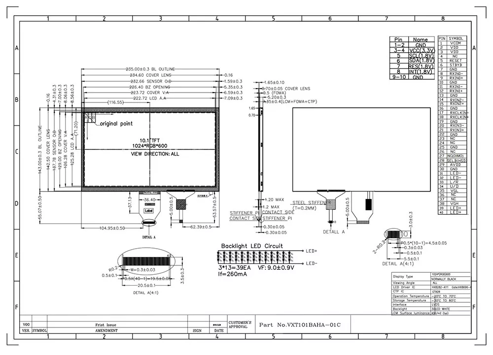 TFT LCD es un tipo de pantalla de cristal líquido que utiliza tecnología de transistores de película delgada para mejorar la calidad de la imagen, y tiene numerosas aplicaciones en la vida cotidiana. Como fabricante y proveedor de módulos TFT profesionales en China, ¿qué hace que el módulo TFT Victronix 10.1 pulgadas 1024 × 600 IPS con CTP sea diferente de otros fabricantes? En primer lugar, ofrece un brillo típico de 420 CD/m², ángulos de visión de 80 ° ancho en todas las direcciones y una relación de contraste de 800: 1, asegurando una excelente legibilidad desde varios ángulos. En segundo lugar, integra una unidad de luz de fondo que utiliza 39 LED blancos con una vida útil típica de 30,000 a 50,000 horas (al 50% de brillo inicial), lo que garantiza una clara visibilidad en todas las condiciones de iluminación. Además, admite una interfaz LVDS de 6/8 bits con el controlador HX8282A11+HX8696A y un robusto panel táctil capacitivo de 5 puntos con controlador CTP GT928. Además, pasa pruebas ambientales rigurosas, incluido el choque térmico (-30 ° C ↔ +80 ° C ciclos), el almacenamiento de humedad (60 ° C/90% HR) y la vibración mecánica, asegurando que pueda funcionar a la perfección en un rango de temperatura extendido (-20 ° C a +70 ° C).