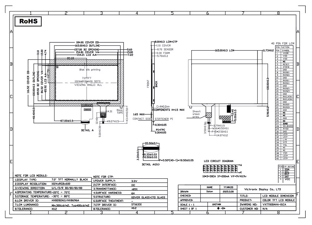 Victronix es un fabricante y proveedor profesional del módulo TFT con sede en China. Con 18 años de experiencia en este campo, hemos desarrollado una variedad de modelos. Además de nuestros productos estándar, también ofrecemos servicios personalizados para satisfacer las necesidades específicas de nuestros clientes. Este Victronix de 7 pulgadas 1024 × 600 LVDS IPS TFT LCD es un módulo LCD TFT de 7 pulgadas sólido diseñado por Victornix para exigentes aplicaciones industriales, integradas y comerciales. Combinando imágenes vívidas, funcionalidad táctil receptiva y confiabilidad de grado industrial, este módulo ofrece un rendimiento excepcional en diversos entornos operativos.